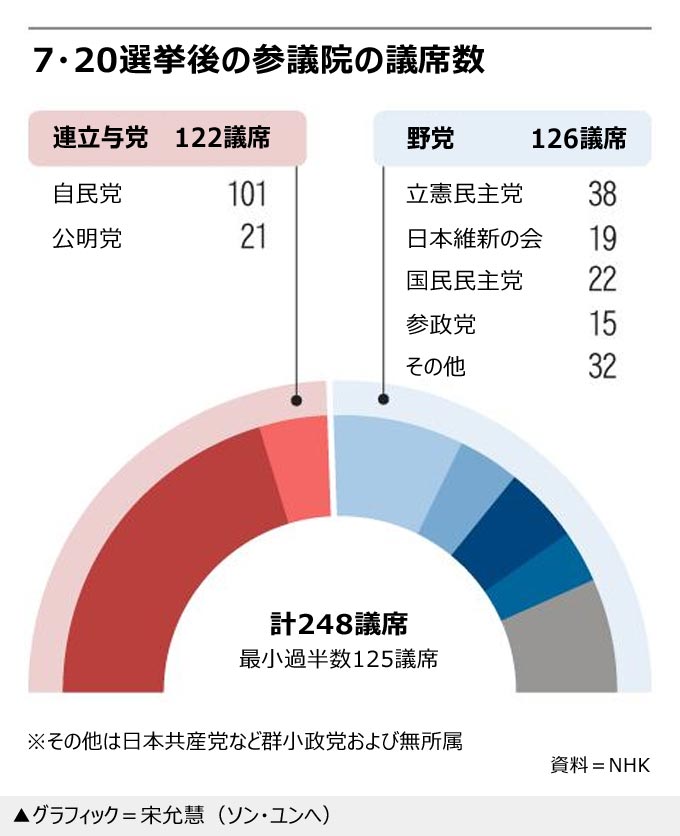 最近の円安と物価高、実質賃金の下落、犯罪率の増加で、生活水準や治安が以前のようではないと感じている日本人たちの心に入り込むことにも成功した。多くの有権者が「自民党や既存の野党は家計の現実問題を解決してくれない」と感じる中、「投票したい政党がないなら、 自分たちでゼロからつくる」とスローガンを叫んで外国人規制強化・税金改革に乗り出すという参政党に期待を持つようになったのだ。産経新聞は「単純明快な主張は自民党を支えてきた堅固な保守層を崩し、就職氷河期世代や無党派層、主婦層にも食い込んだ」と分析した。朝日新聞は「参政党の街頭演説のときには立ち止まって聞く人が多かった」と伝えた。