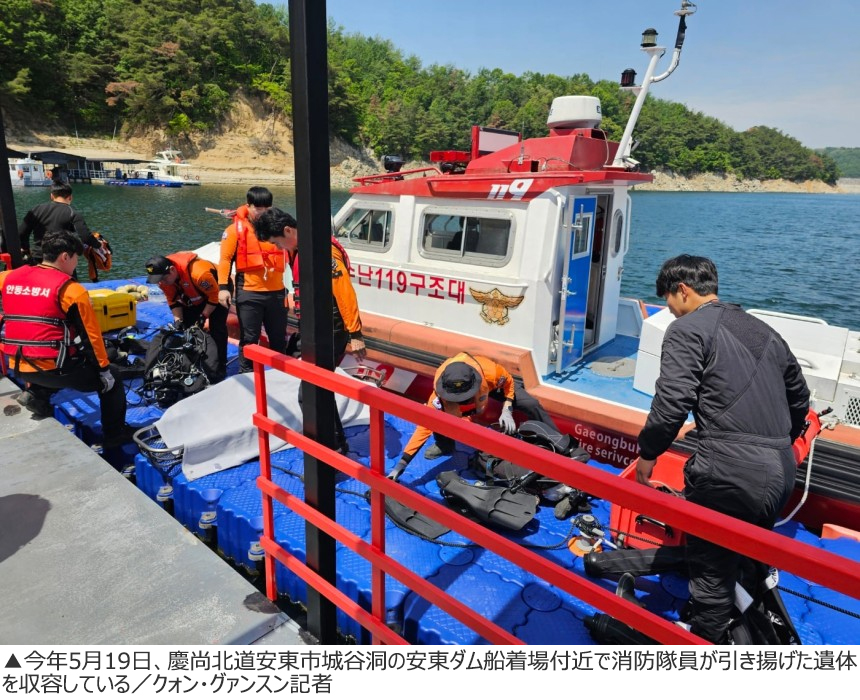 遺体発見に決定的な役割を果たしたのは、地元の水難救助隊長ペク・ギュミンさん(55)だった。ペクさんは当時、安東ダム船着場付近の岸から150メートルほど離れた場所に水上構造物を設置する作業を行っていて、誤ってはしごを水中に落とした。ちょうど潜水装備を着用していたペクさんは水深30メートルまで潜り、湖底ではしごを発見した。