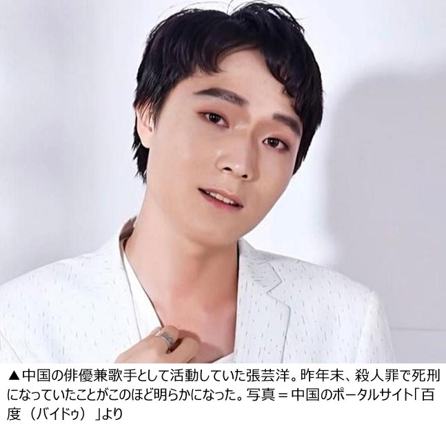 中国の交流サイト(SNS)上に23日現在までに広まった陝西省咸陽市の中級人民法院(裁判所)の刑執行公告や複数の外国メディアなどによると、俳優兼歌手として活動していた張芸洋に対する銃殺刑が昨年12月18日に執行されたとのことだ。これは死刑宣告があった当日だ。張芸洋は2022年2月、当時16歳だった交際相手の少女を森に連れて行き残酷な手口で殺害したとして起訴され、裁判所は死刑を宣告した。犯行動機は、少女が別れを切り出して激怒したためとされている。