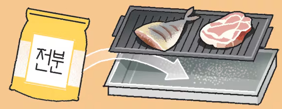 グリルで魚や肉を焼く時は、油の受け皿に古いかたくり粉をまいておくと、かたくり粉が油を吸収して、油の受け皿を洗うのが楽になる。