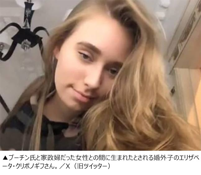 英紙「タイムズ」などが4日(現地時間)、報じた。それによると、プーチン大統領の婚外子とされるエリザベータ・クリボノギフさん(22)はテレグラムのチャンネルに自身の写真を投稿し「再び自分の顔を世間に見せることができるようになり、解放感を覚える」..