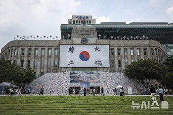 【NEWSIS】8日、ソウル市中区のソウル広場に造成された「太極旗の丘」の様子。