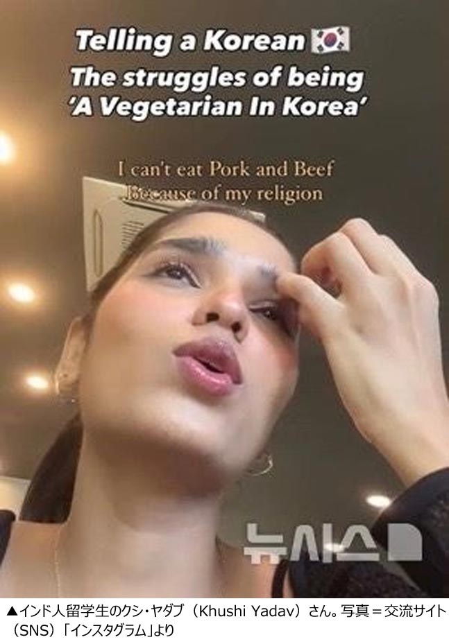 【NEWSIS】韓国に留学しているインド人女性が「韓国で菜食主義者として暮らすのは難しい」と吐露し、話題を集めている。