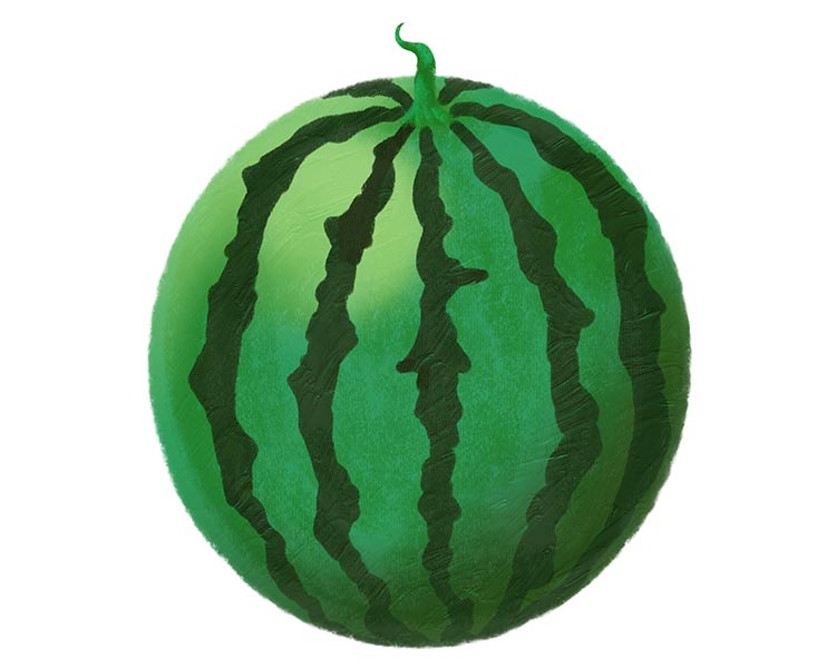 写真には、祭祀用の台に供える果物のように、上の部分が丸く切り取られて赤い果肉があらわになったスイカが写っている。それだけでなく、スイカは半分にカットされて二つ合わさった状態になっている。