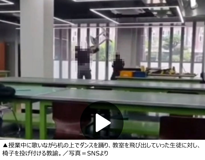 【NEWSIS】光州市内の高校で、授業時間に机の上でダンスを踊るなど授業を妨害した生徒に対し、教諭が椅子を投げ付けるという騒ぎがあった。