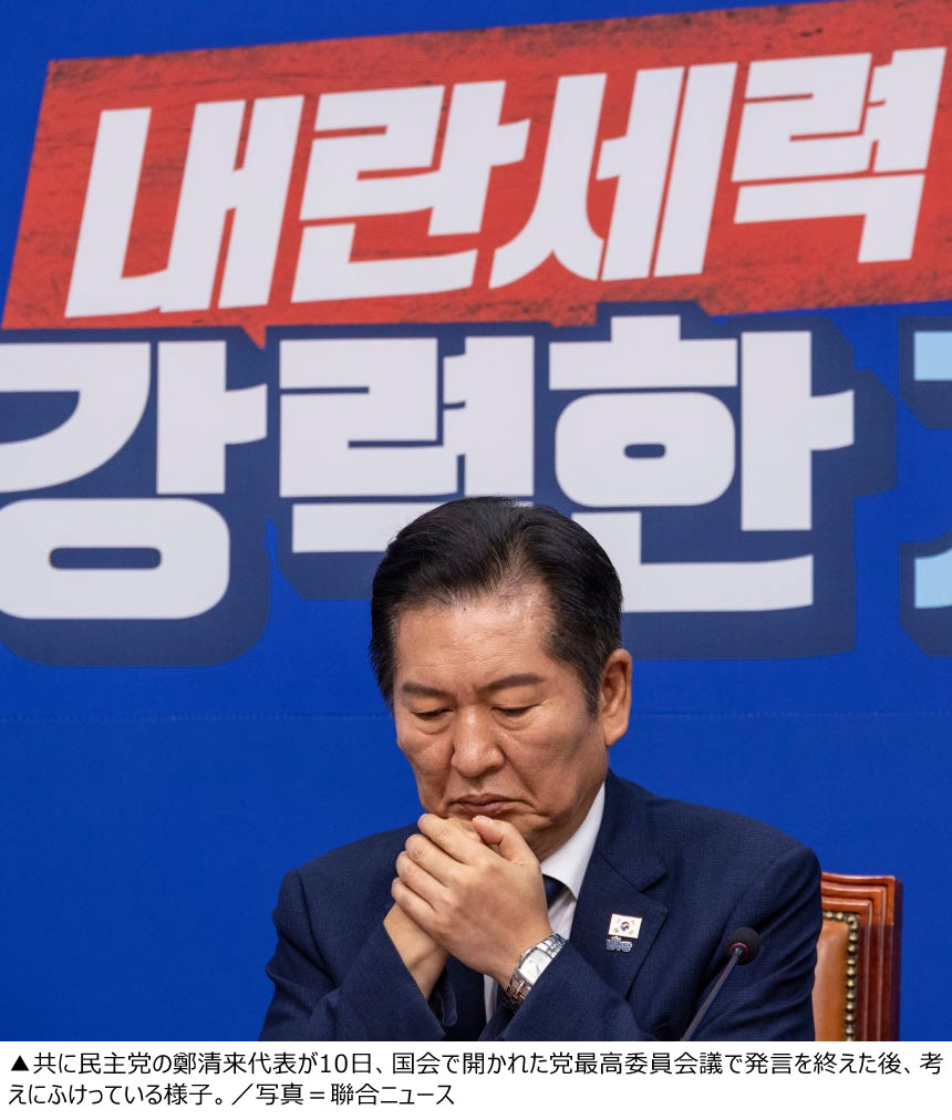 進歩(革新)系与党「共に民主党」の鄭清来(チョン・チョンレ)代表は10日、党最高委員会議で「きのうの私の交渉団体代表演説で、過去最大級の妄言が議員席から出た。本当に耳を疑った」と発言した。