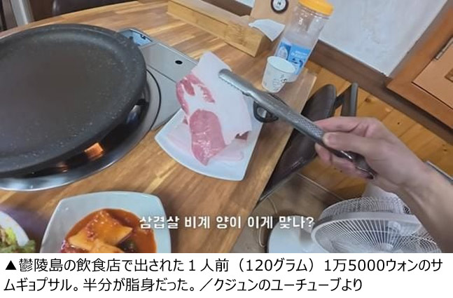 【写真】半分が脂身…鬱陵島の飲食店で出された1人前(120グラム)1万5000ウォンのサムギョプサル