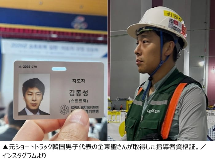 金東聖さんはこれまで、建設現場で働きながら資格取得に向けて準備してきたという。妻のイン・ミンジョンさんは今年8月にも、夫がおよそ8年ぶりに指導者講習会に参加したことを明かし「2025年指導者講習会。およそ8年ぶりに講習会に参加した金東聖を応援してる。ショートトラック発展のために、走れ」とつづっていた。
