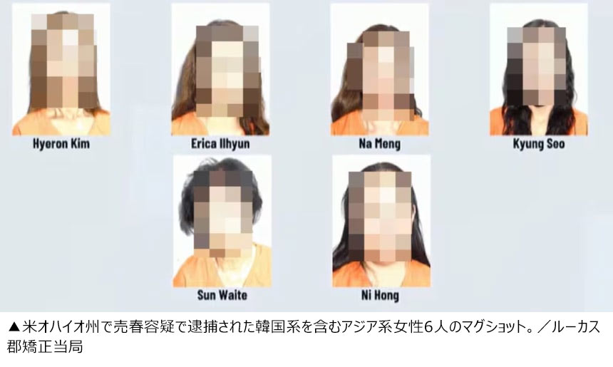 米オハイオ州で、韓国人を含むアジア系の複数の女性が売春容疑で逮捕され、当局が女性たちの顔写真や身元情報を公開した。