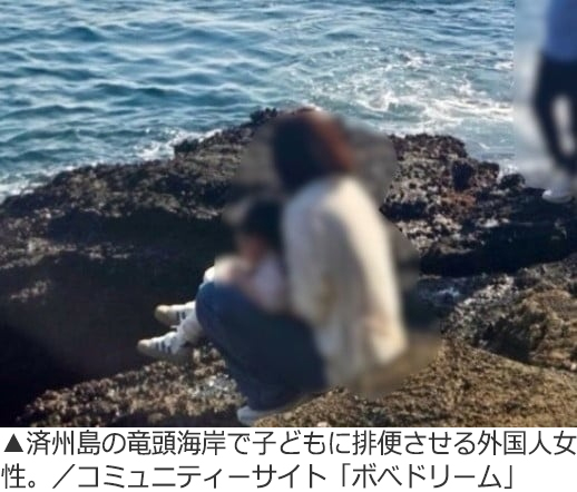 韓国の天然記念物に指定されている済州島の竜頭海岸で、外国人観光客が幼い子どもに排便させ、それを片付けもせず現場を汚染する様子がカメラに捉えられた。
