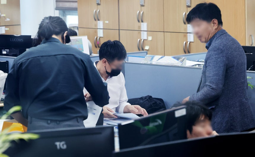 ▲今年8月22日、金検希夫人の各種の疑惑を捜査している閔中基(ミン・ジュンギ)特別検察官のチームが、京畿道楊平郡庁で楊平高速道路終点路線変更疑惑事件等に関連して家宅捜索を行っているところ。/写真=ニュース1