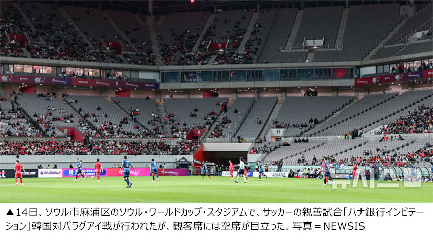 【写真】強豪パラグアイとの対戦なのに空席が目立つソウル・ワールドカップ・スタジアム
