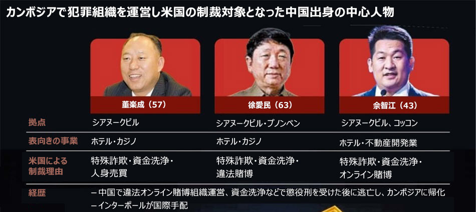 【表】カンボジアで犯罪組織を運営 米制裁対象の中国出身者たち