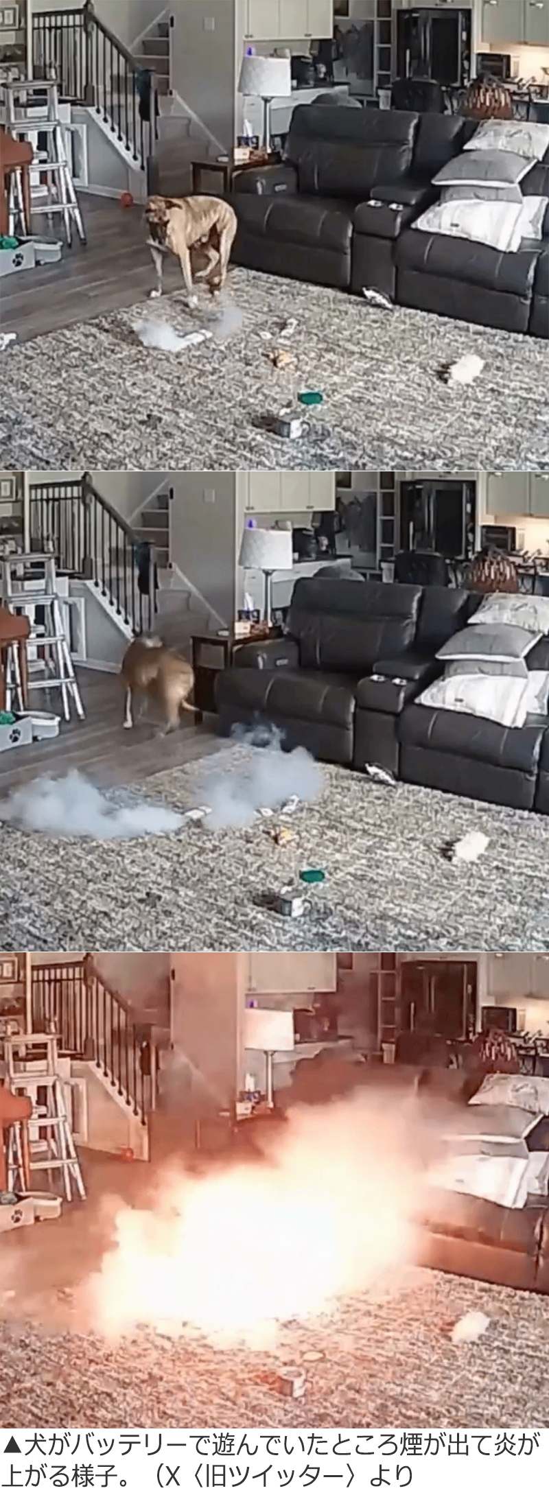 【NEWSIS】米ノースカロライナ州の住宅で、飼い犬がリチウムイオンバッテリーをかんで遊んでいたところ、突然火が噴き出して火災になるという事故があった。監視カメラがこの恐ろしい事故の一部始終を捉えていた。