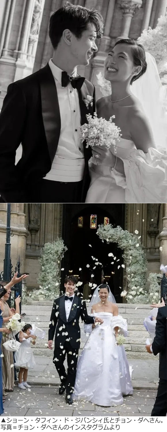 報道によると、ショーン・タフィン・ド・ジバンシィ氏とチョン・ダヘさんは今年8月、フランス・パリで結婚式を挙げたとのことだ。