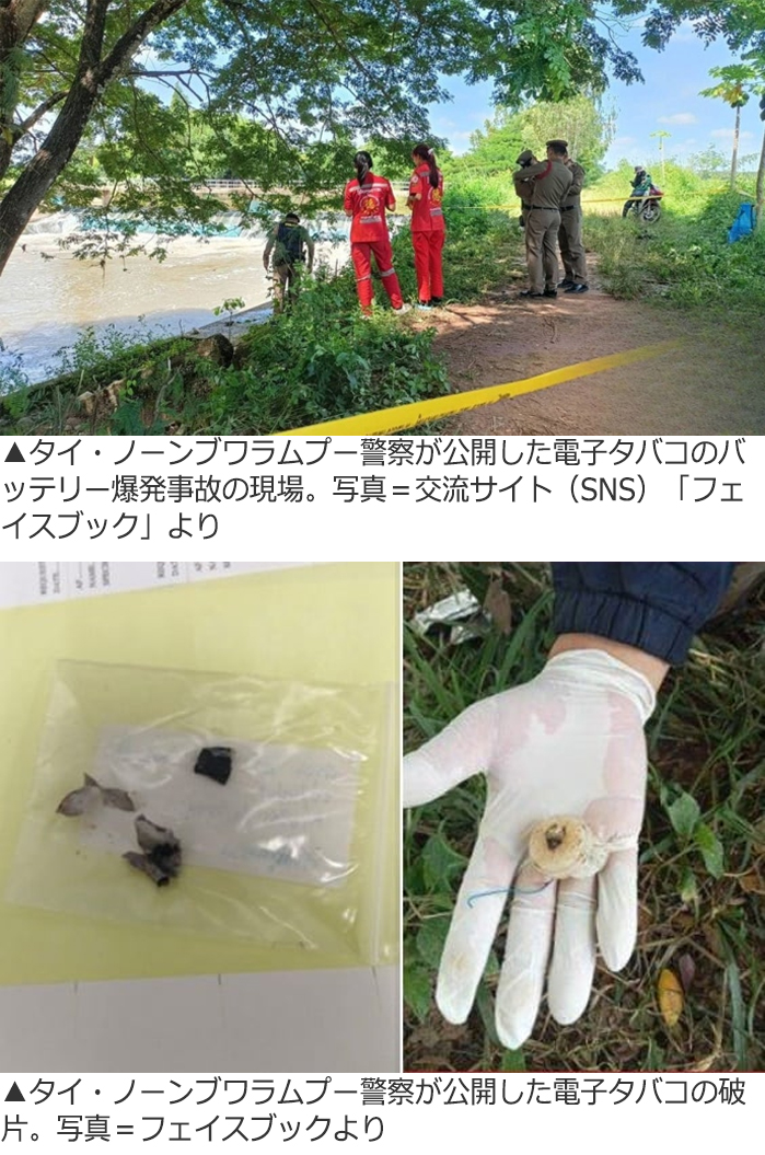 ノーンブワラムプー警察は「故人のご遺族に深い哀悼の意を表す。悲しい事故を機に警戒心を強めなければならない。電子タバコのバッテリーは突然爆発する可能性があり、小さいが致命的だ」と警告した。そして、「一服の煙に命をかけるな」と、電子タバコの使用をやめるよう促した。