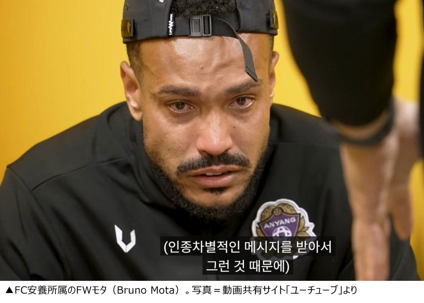韓国プロサッカー「Kリーグ1」FC安養所属のFWモタ(Bruno Mota、29)=ブラジル=が人種差別的なメッセージに涙をこぼした。