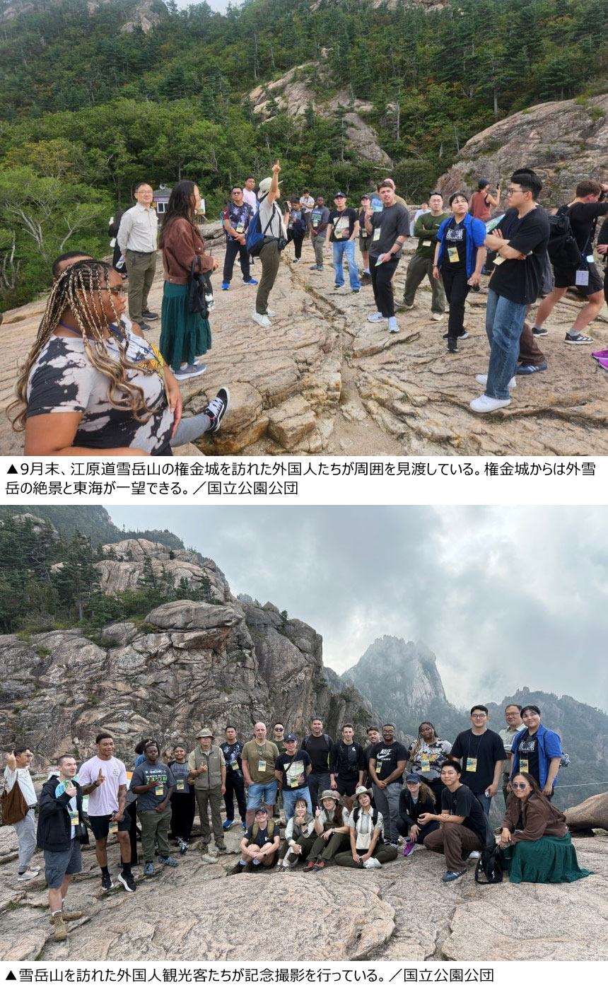 韓国文化を巡る関心が高まり、韓国にある国立公園を訪れる外国人訪問客も増えている。通常、半日でソウルから各地域の国立公園に移動することができ、トレッキングに慣れている外国人が都心だけでなく国立公園に至るまで、旅行の範囲を広げているのだ。