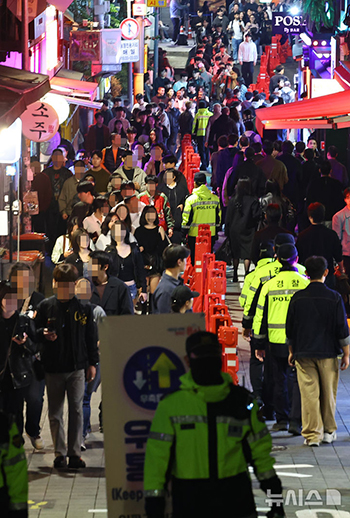 【NEWSIS】ハロウィーンだった10月31日、ソウル市竜山区にある若者の街・梨泰院は大勢の人々で混雑した。