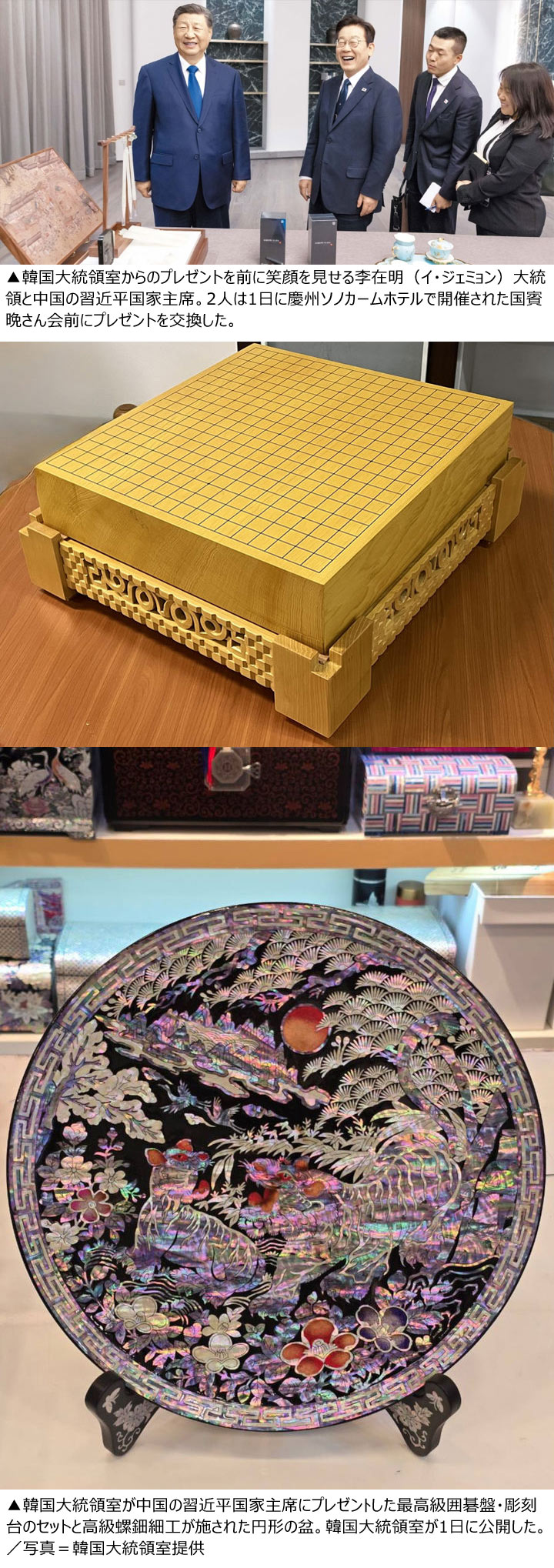 【写真】韓国側が習近平主席にプレゼントした最高級囲碁盤セットと螺鈿細工の盆