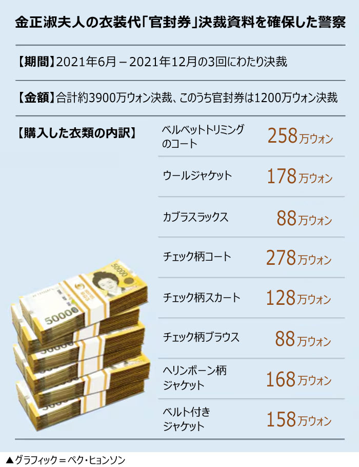 【表】警察が確保した金正淑夫人衣装代「官封券」決裁資料