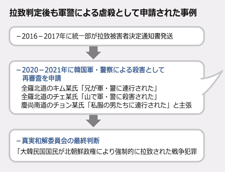 【図表】拉致判定後も韓国軍・警察による虐殺として申請された事例