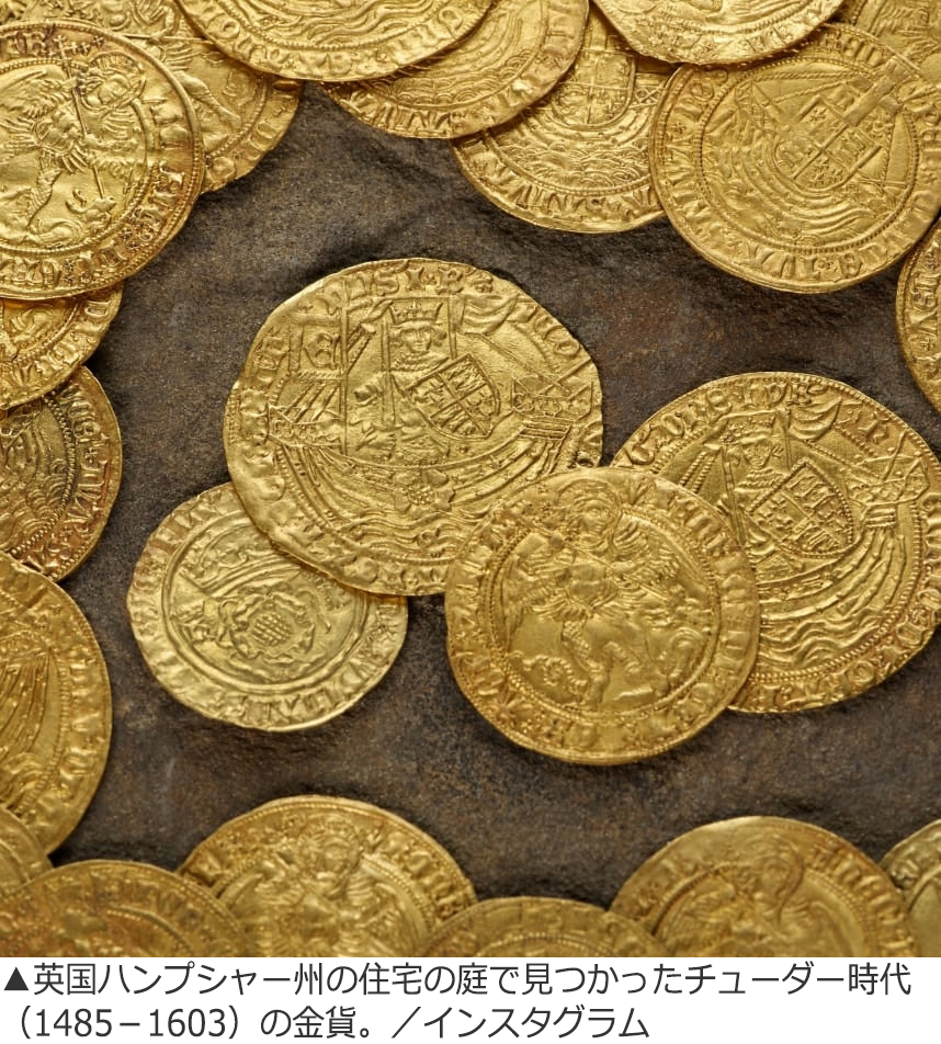 英国ハンプシャー州にある住宅の庭でチューダー時代(1485-1603年)の金貨約70枚が発見され、オークションで約9億ウォン(約9500万円)で落札された。