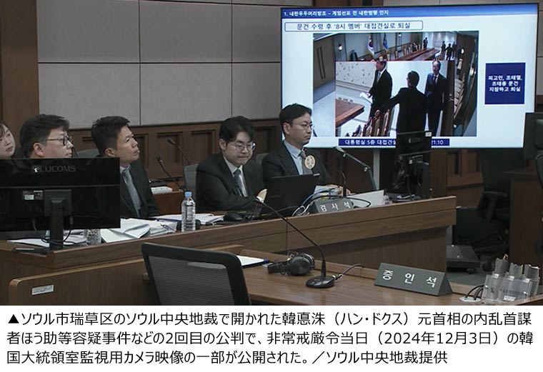 【写真】韓悳洙元首相の公判で公開された非常戒厳当日の大統領室の監視カメラ映像