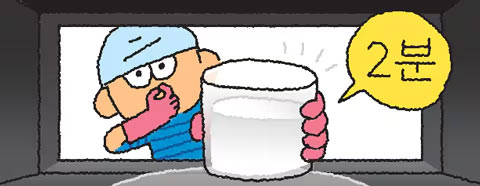 電子レンジから焦げくさいにおいがする時は、賞味期限が切れた牛乳をコップ1杯ほど入れて約2分温めると、牛乳の中のタンパク質がにおいを吸収してくれる。