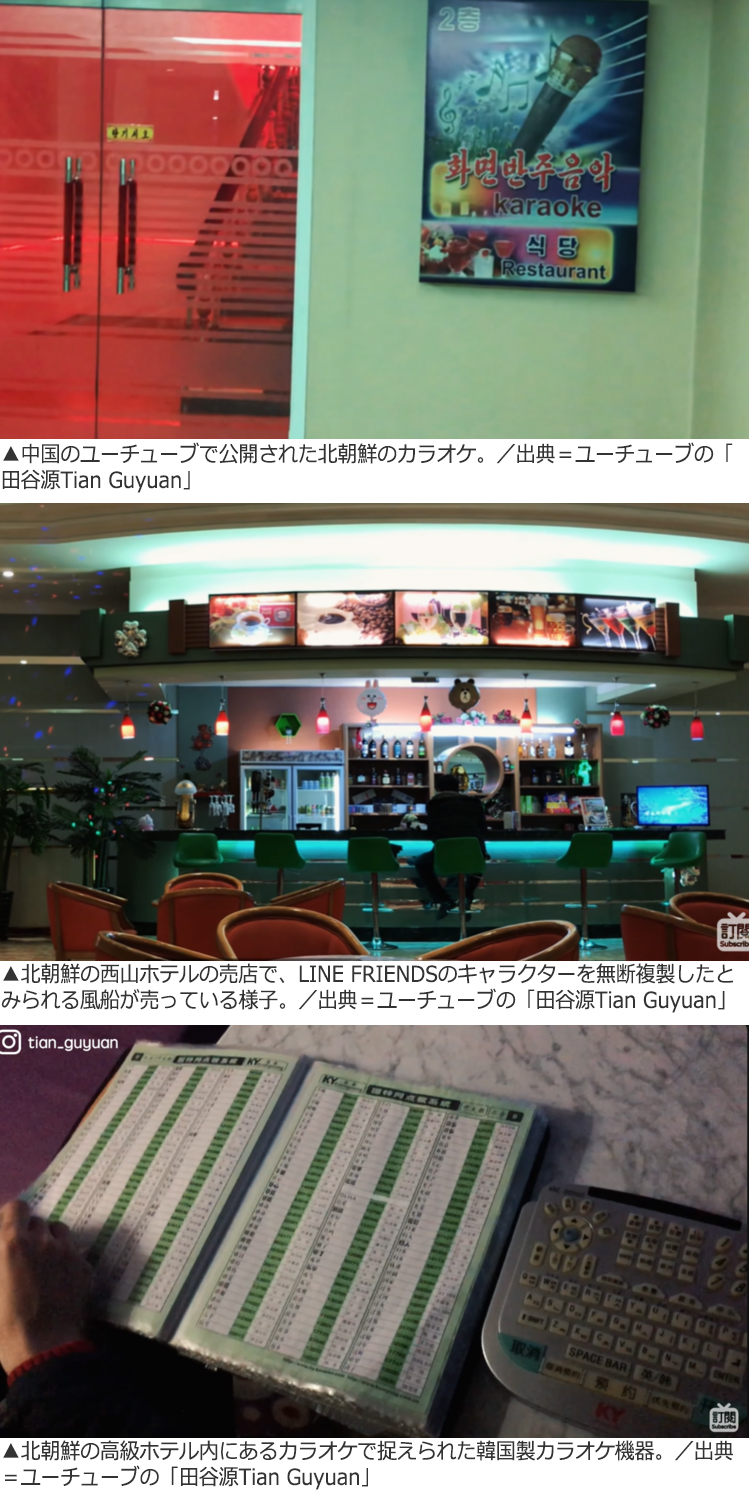 北朝鮮・平壌の最高級ホテルで韓国製カラオケ機器や韓国のキャラクター商品が使われている様子が、中国のユーチューバーの動画で確認された。