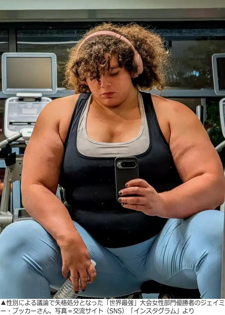 報道によると、このほど米テキサス州で開催された「世界最強」大会の主催者側が、女性部門に出場した米国人ジェイミー・ブッカーさんを「生物学上の..