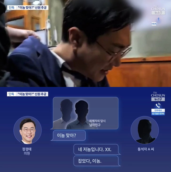 セクハラ(性的嫌がらせ)被害者が被害から1年後に韓国与党・共に民主党の張京泰(チャン・ギョンテ)議員を告訴したのは、報復に対する恐怖心のためだったと語ってきました。こうした状況を示す当時のグループチャットの内容をTV朝鮮が確認しました。ここには張京泰議員が飲み会で同席した男性秘書官に、被害者の交際相手=当時=の身元を確認する様子もありました。そして、この男性秘書官は元交際相手に不利益を示唆するようなメッセージも送りました。ファン・ジョンミン記者が独自取材しました。