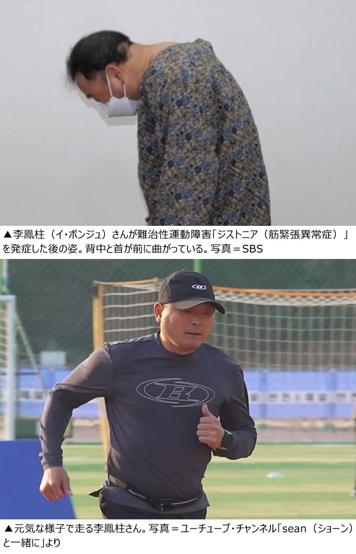 【写真】ジストニアを発症した李鳳柱さん…背中と首が曲がった様子と元気に走る姿