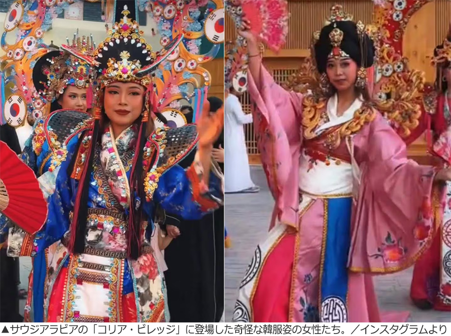 サウジアラビアの祭典会場に設けられた韓国伝統文化体験スペースで、伝統的な韓服(韓国の伝統衣装)とはかけ離れた奇怪なデザインの韓服が登場し、物議を醸している。