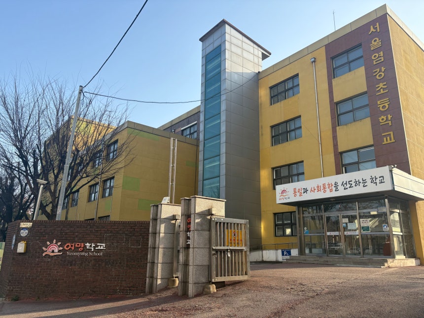 ソウル市江西区加陽洞にある黎明学校は、学校の看板を見つけるのが大変だった。黎明学校は脱北した青少年のための代替学校(オルタナティブスクール)で、2023年8月に、廃校した塩江小学校の跡地に移転した。しかし、校舎の外壁には「塩江小学校」という文字がそのまま残っており、黎明学校という名称は正門横の塀に小さく掲げられているだけだった。「脱北者の学校が我が町にあるなんて」という住民の反発を懸念し、移転作業も真夜中に行われた。校庭や付帯施設は使わず、校舎も1階と2階だけ使用している。