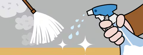 寒い冬に部屋の掃除をする時は霧吹きを使ってみよう。霧吹きで床に水を少しまいた後、掃除するとほこりが立ちにくくなる。