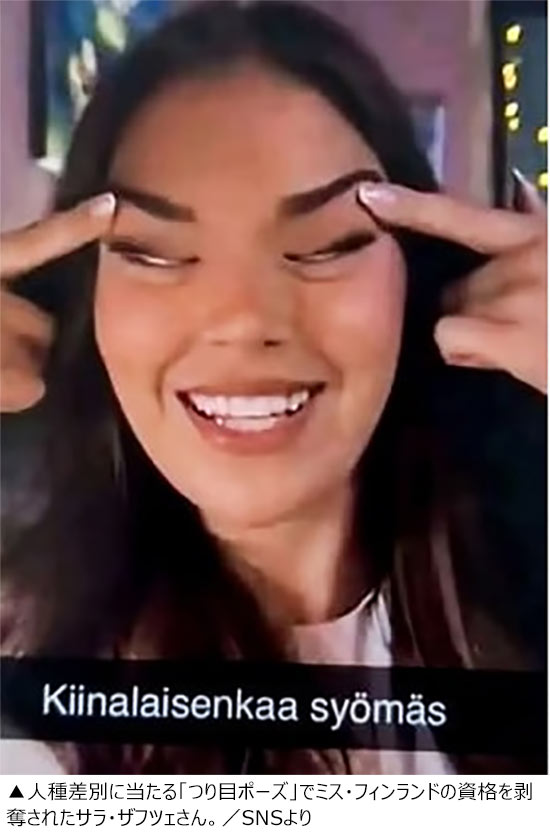 ミス・フィンランドに選ばれたサラ・ザフツェさんが、人種差別をしたとして批判を受け、ミス・フィンランドの資格を剥奪された。