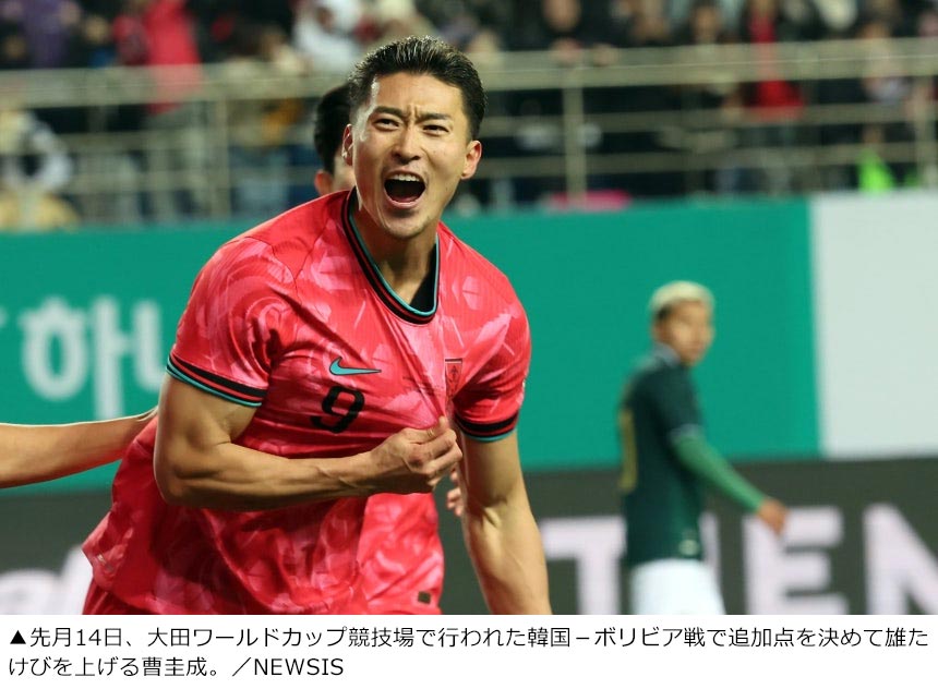 8月には所属チームに復帰して調子を上げ、先月には韓国代表に招集された。先月14日に大田ワールドカップ競技場で行われたボリビア戦では1年8カ月ぶりとなる国際Aマッチ出場を果たし、復活ゴールを決めた。このとき曹圭成は「執念で決めたゴール。(けがをして以降)精神的にいっそう強くなった」と明かした。