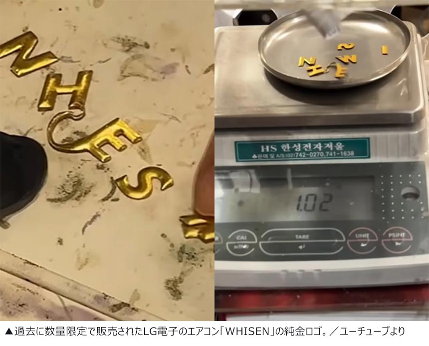 LG電子が過去に数量限定で販売した家庭用エアコン「フィセン(WHISEN)」のロゴが、純金でできていたことが分かり、話題になっている。