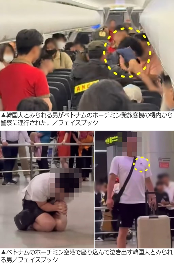 韓国人とみられる男が旅客機の機内でベトナム警察に逮捕されたが、逮捕当時の動画が現地のSNS(交流サイト)などで広がっている。
