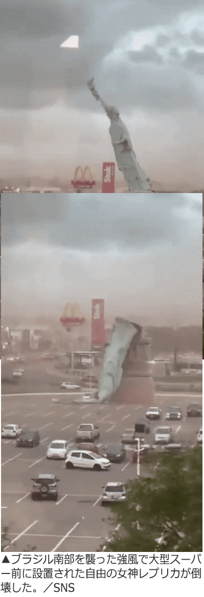 ブラジル南部で自由の女神レプリカが倒壊した。
