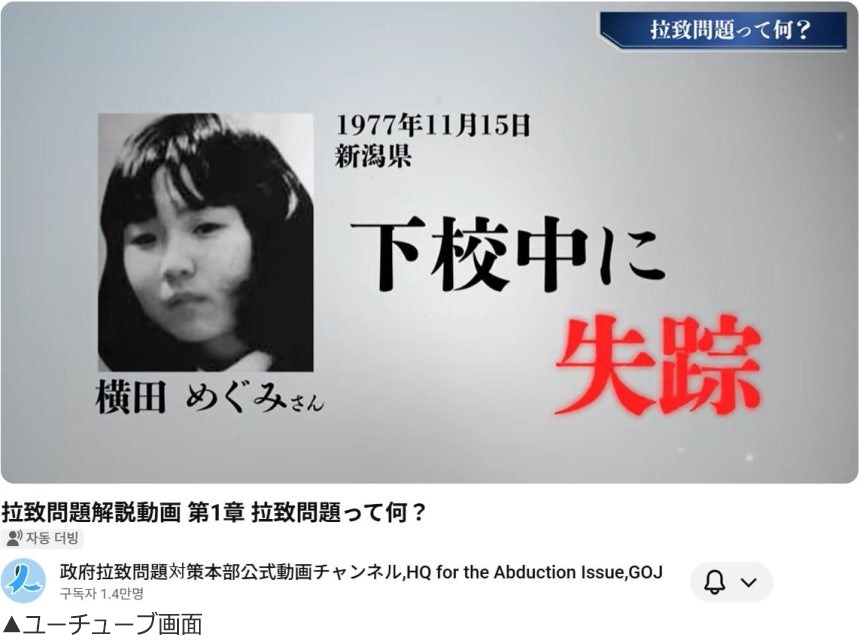 【写真】横田めぐみさんの拉致問題を伝える日本政府のユーチューブの画面