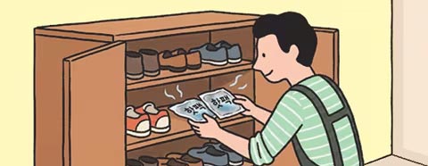 使い終わったカイロは靴箱に入れると、カイロの原料の一つである活性炭がにおいの分子を吸着し、靴箱のにおいが抑えられる。