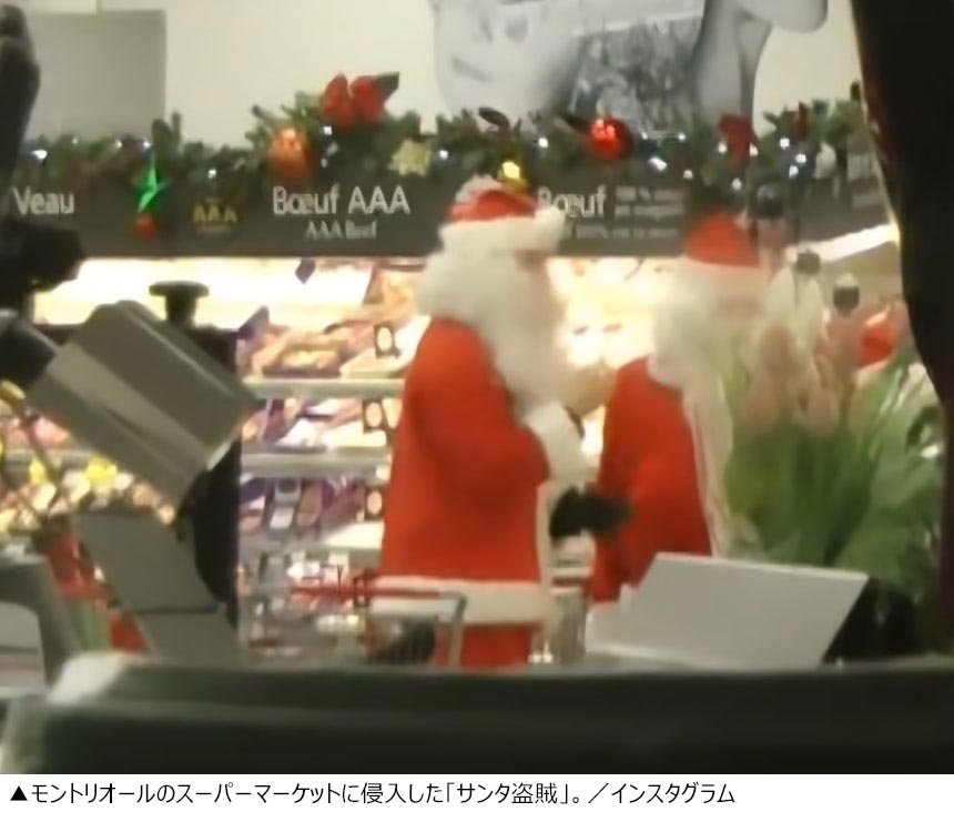 カナダ・モントリオールの大型スーパーマーケットで、赤い服を着て真っ白いひげを生やした「サンタクロース」たちが数千ドル(数十万円)分の食料品を盗んで逃走するという事件があった。