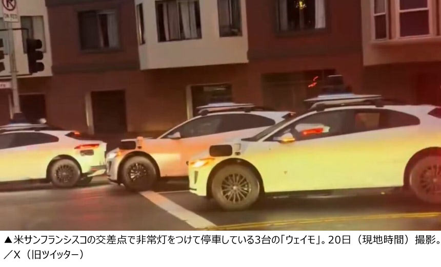 ウェイモは、停電発生地域の交差点や道路の至る所で赤い非常灯をつけて止まり始めた。信号機のように従うべきルールがなくなった上、通信信号が弱まったため、安全な運転ができないと判断した運営者がタクシーのコールサービスを停止したからだ。海外メディアは「自動運転の車にいくら精巧なセンサーがついていても、結局は都市の電力網や通信網といった外部のインフラに大々的に依存しているという事実を如実に示した」と分析した。