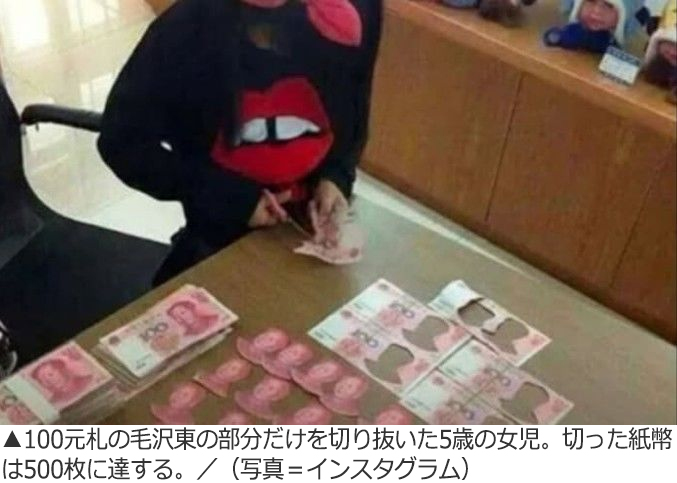インド・メディア「NDTV」が12月22日、報じた。それによると、中国・山東省青島に住む5歳の女児が自宅で遊んでいた際、中国元の紙幣に描かれた毛沢東の肖像を全て切り抜いてしまったという。その様子を収めた写真は19日、中国のSNS(交流サイト)で公開された。