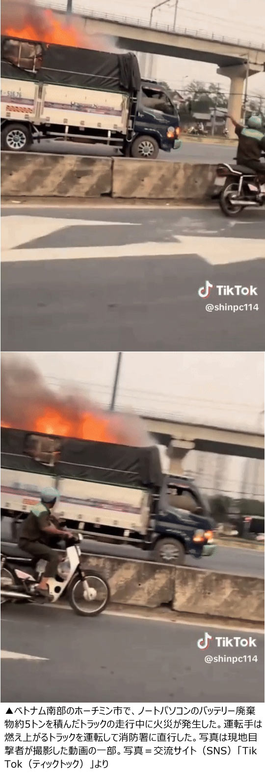 【NEWSIS】ベトナム南部のホーチミン市で、火災が発生したトラックが2キロメートル以上疾走するという驚きの様子がカメラに捉えられた。ベトナム・メディア「VNエクスプレス」が22日(現地時間)に報道した。