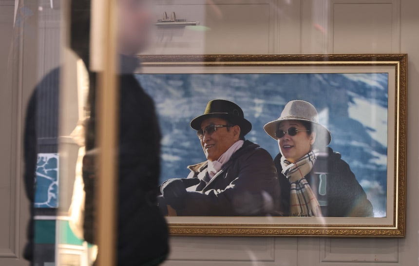 ▲15日、ソウル市竜山区の世界平和統一家庭連合(旧統一教会)韓国本部のロビーには、韓鶴子(ハン・ハクチャ)総裁=写真右=と故・文鮮明(ムン・ソンミョン)元総裁の写真がかかっていた。写真=聯合ニュース