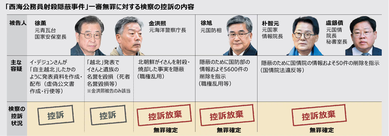 ソウル中央地検は「西海公務員射殺隠蔽事件の一審無罪判決について証拠関係と関連法理を綿密に検討し、大検察庁(最高検)との協議を経て一部控訴を決定した」と説明した。