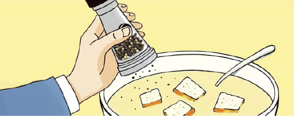 粒コショウは料理に使う直前にひこう。ひいた後、長い間置いておくと香りが飛んで風味がなくなる。